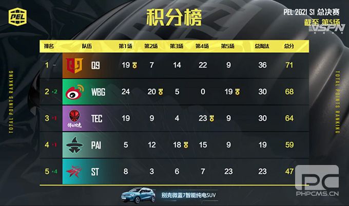 一往无前,一战成名!PEL 2021 S1賽季总决赛当日战绩出现异常猛烈,当日积分排名也展现焦躁之势,Q9职业队、WBG职业队、TEC体育界游戏战队,总成绩各自以71分、68分、64分,位居积分排名前三,战况差别十分小。