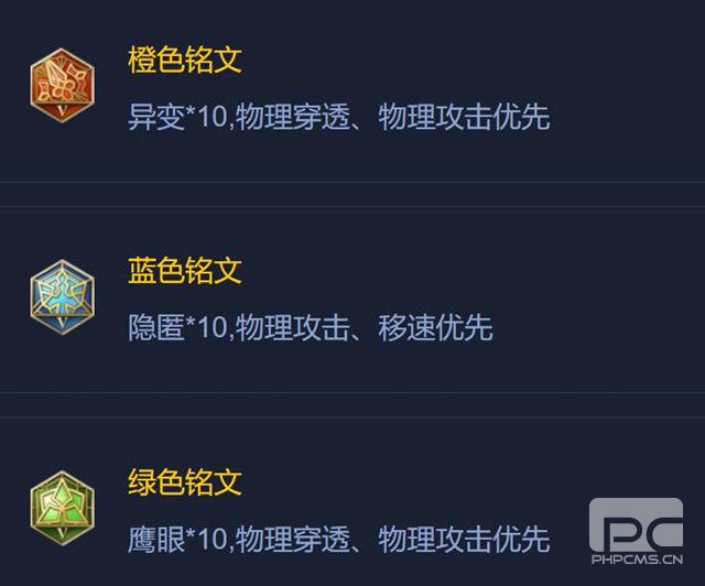 夏洛特的符文强烈推荐:10异变、10藏匿、10鹰眼侠,首吊物穿、移速,增加物攻。
